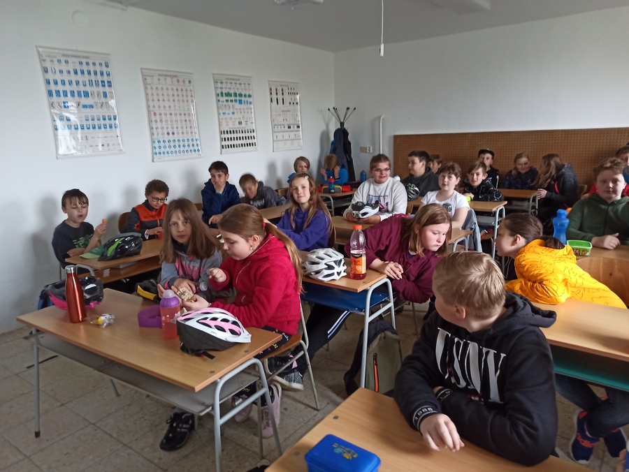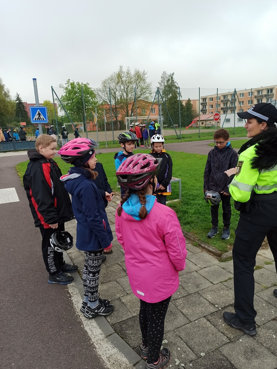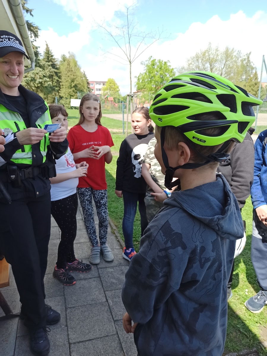 Ve čtvrtek 5. května vyrazili žáci 4. a 5. třídy složit teoretickou a praktickou zkoušku z dopravní výchovy. Po menším zopakování vyplnili test a následně si za doprovodu zástupců Městské policie prošli dopravní hřiště a absolvovali i praktické jízdy. Na závěr byli ti, co vše zvládli na potřebný počet bodů, odměněni průkazem cyklisty.