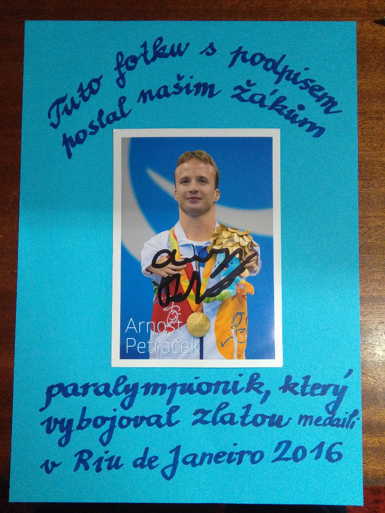 Úvod > Základní škola > Aktuality ZŠ > Dostali jsme podepsanou fotografii od zlatého medailisty Arnošta Petráčka