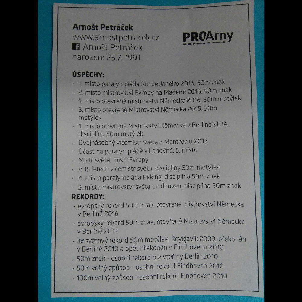 Dostali jsme podepsanou fotografii od zlatého medailisty Arnošta Petráčka