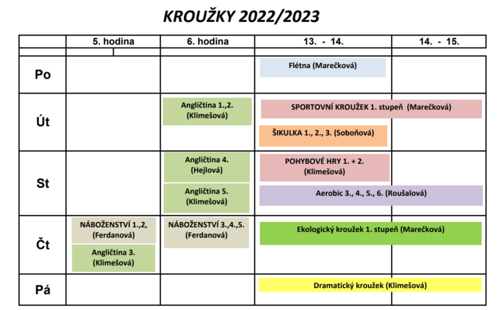 Nabídka kroužků na prvním stupni je na školní rok 2022/2023 následující: