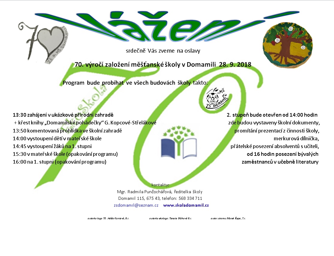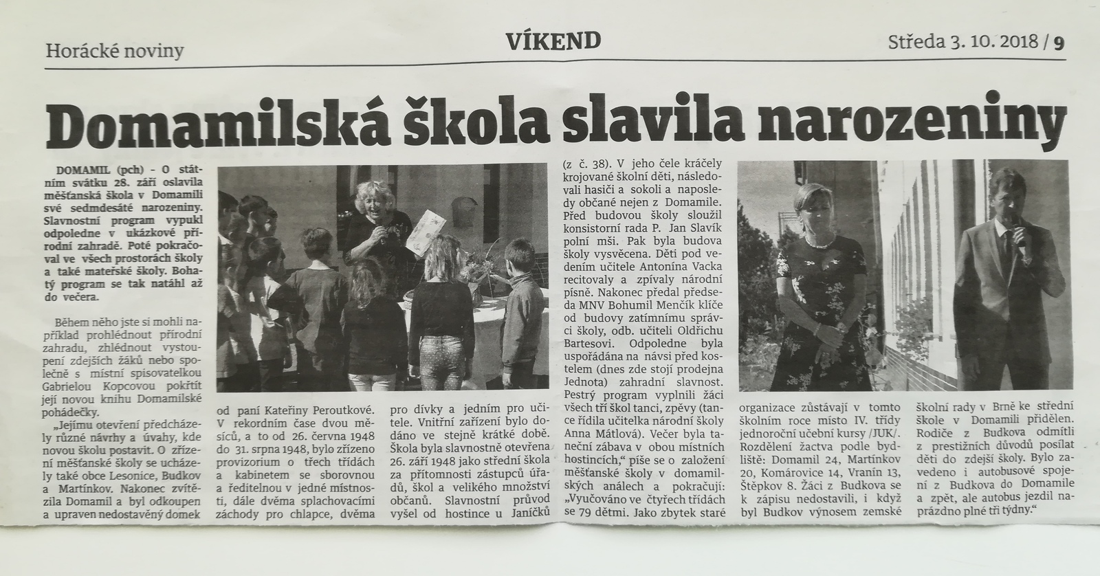 Úvod > Základní škola > Aktuality ZŠ > Oslava 70. výročí založení měšťanské školy v Domamili