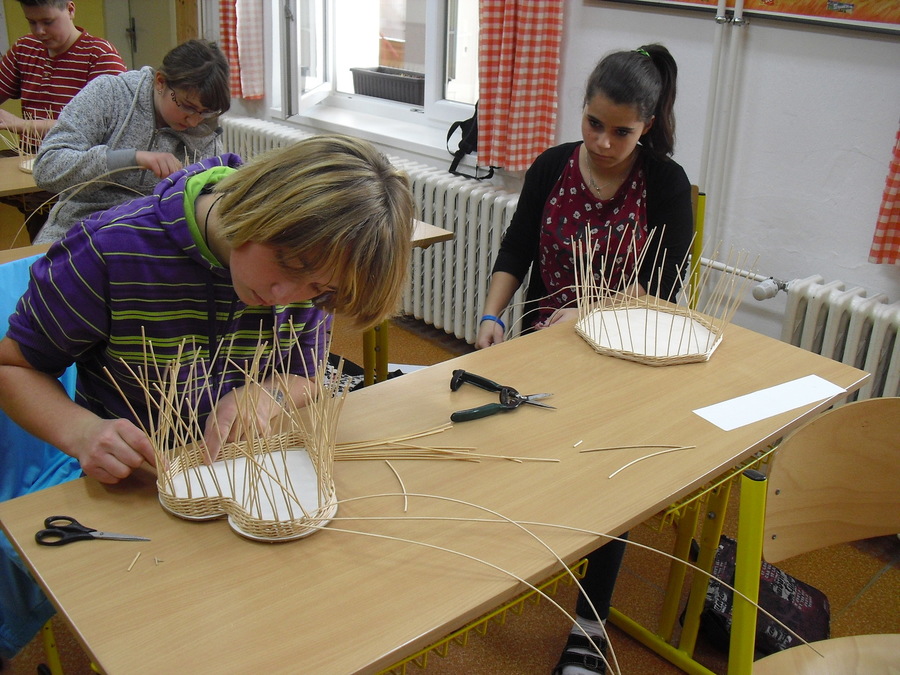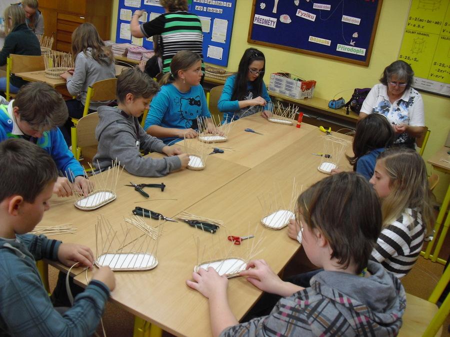 Zatím, co někteří vybraní žáci naší školy byli na vzdělávacím pobytu ve Velké Británii, ostatní se ve škole pilně učili. Aby jim to však nebylo líto, že se musí stále učit, několik dní z tohoto týdne jsme zaměřili na pracovní dílny. Mimo jiné si žáci mohli vyzkoušet po letech zase pletení z pedigu. Někteří se pustili do větší ošatky, někteří zvládli ošatku menší. Všem se tato práce líbila, takže pracovali s velikou chutí. Některé ošatky žáků budeme moci zhlédnout na vánoční výstavě, která se uskuteční 16. a 17. prosince v místní sokolovně.