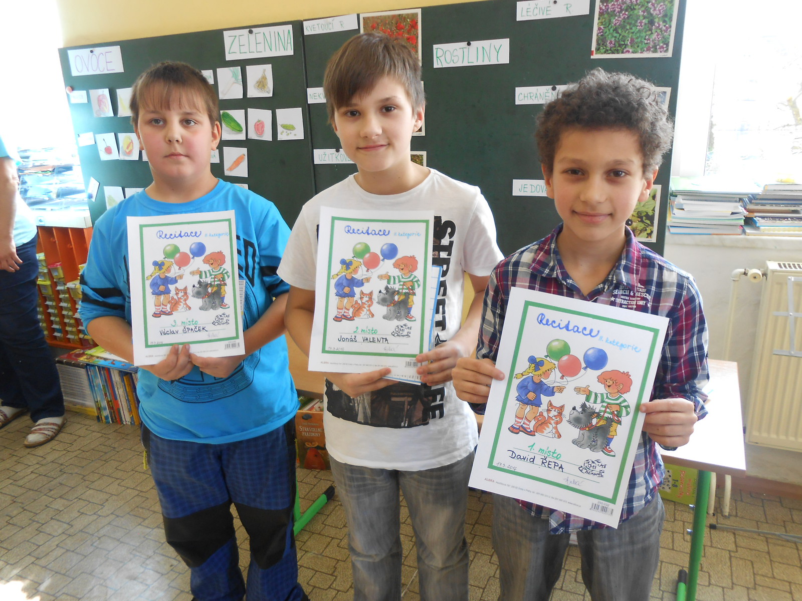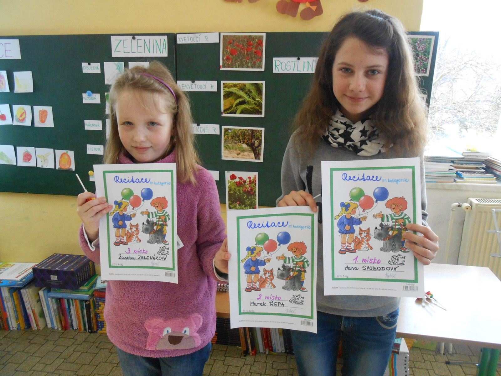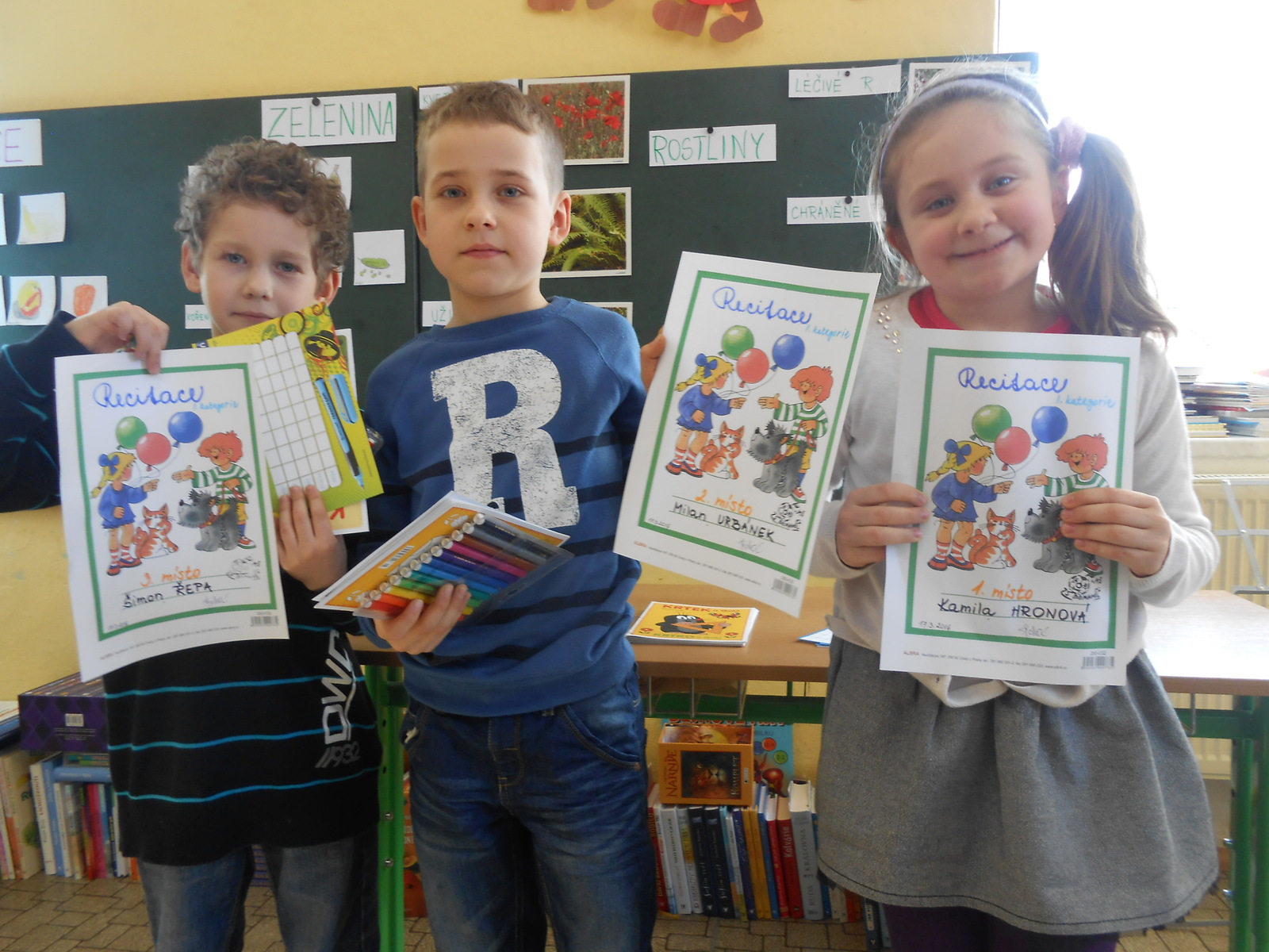 Ve čtvrtek 17. března 2016 proběhlo na 1. stupni školní kolo recitace, kterého se opět zúčastnili vybraní žáci z každého ročníku . Soutěžilo se ve třech kategoriích. Porota vybírala vítěze jednotlivých kategorií. A zde máme umístění a fotografie ze soutěže.
