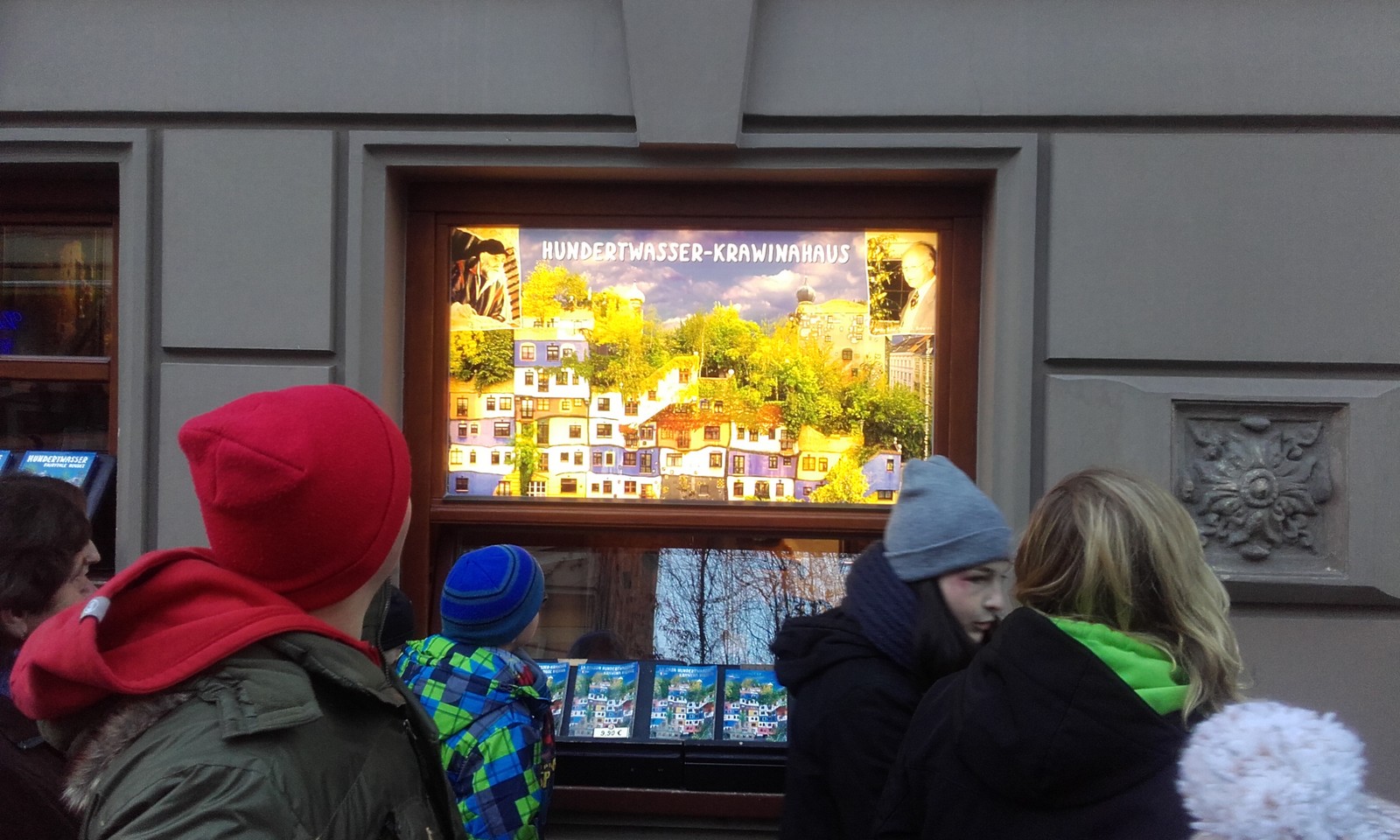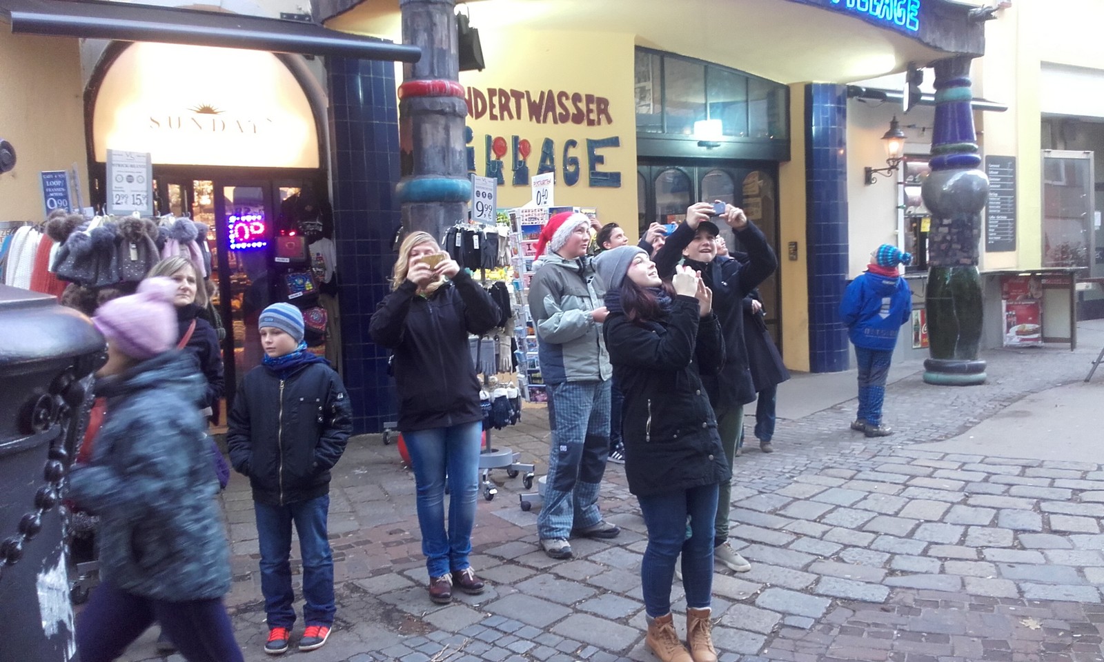 V úterý 13. 12. 2016 měli možnost žáci naší školy spolu se svými rodiči navštívit hlavní město našeho jižního souseda – Vídeň. Tradiční zájezd za vánoční atmosférou jsme začali krátkou návštěvou Hundertwaserova domu. Architekt Hundertwasser tvrdil, že „přímka je bezbožná“ a tímto svým tvrzením se řídil při realizaci přestavby obytného domu, která mu byla zadána v roce 1983. Tato dětsky hravá, barevná, nepravidelná dle odborníků „splácanina“ různých prvků, stylů a ozdob si ihned získala mnoho obdivovatelů. Aby Hundertwasser ušetřil obyvatele domu před zvědavými návštěvníky, postavil hned vedle Kalke Village, ještě barevnější a ještě nepravidelnější nákupní pasáž. Pro turisty je zde informační centrum a spousta upomínkových předmětů ke koupi.