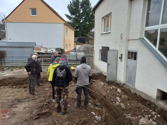 Nejprve byl rozebrán altán, který bude znovu postaven na zahradě MŠ. Nyní probíhají výkopové práce a bude následovat betonování základů.