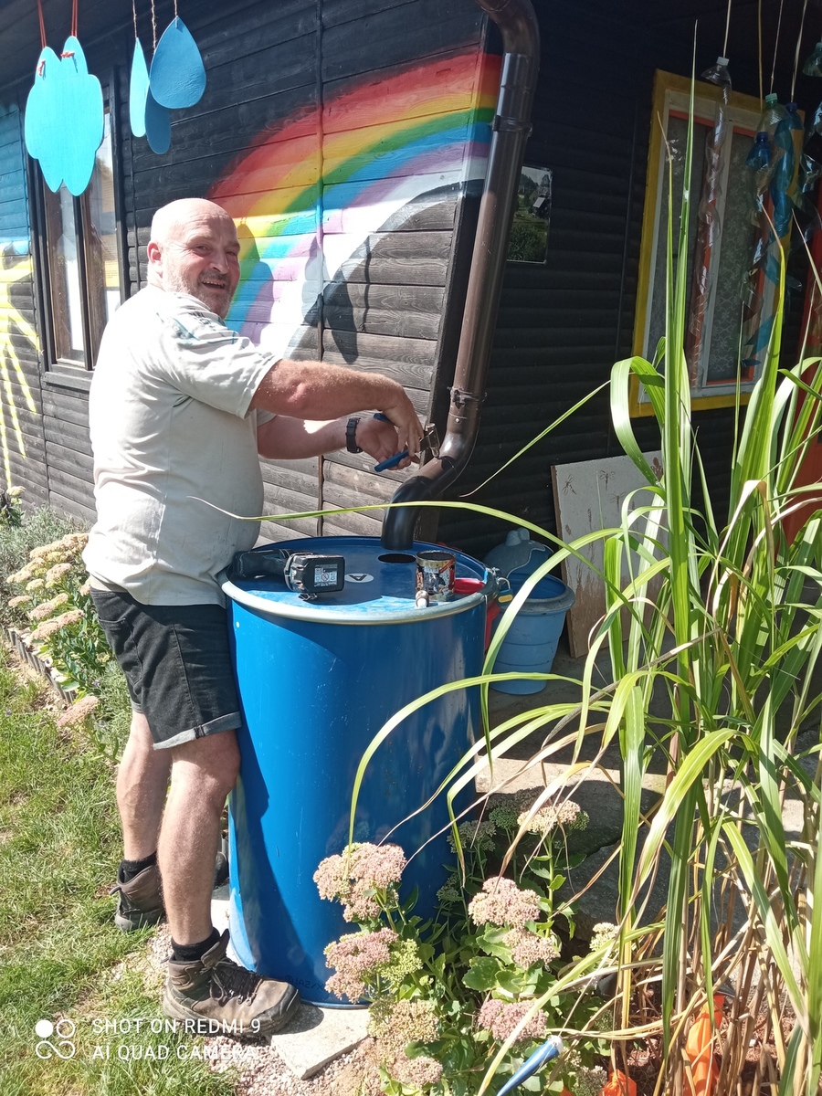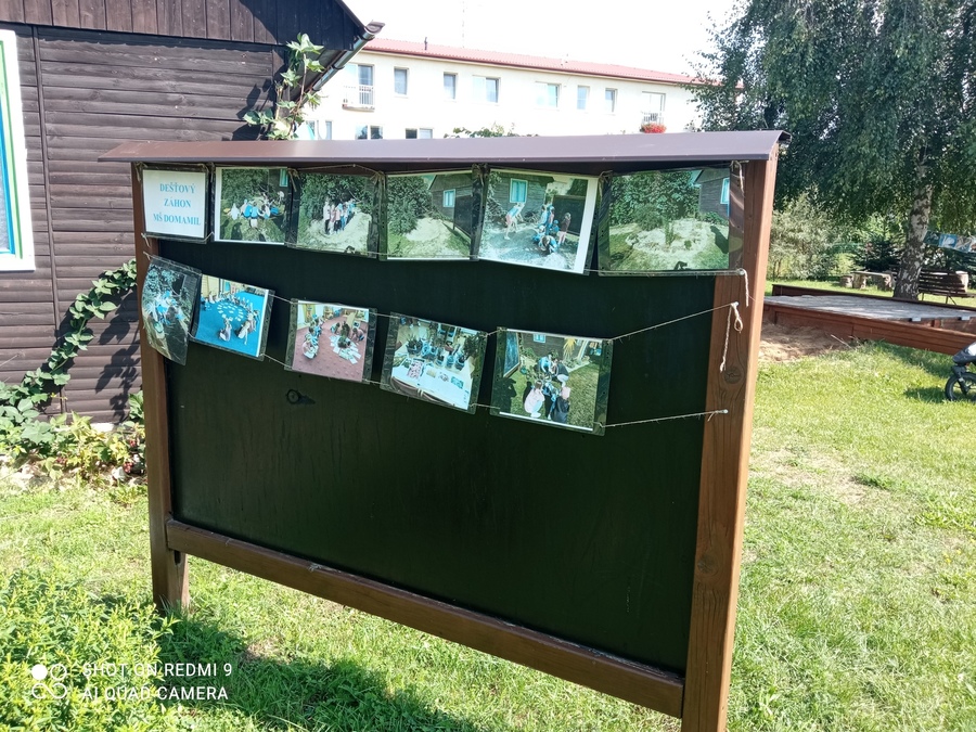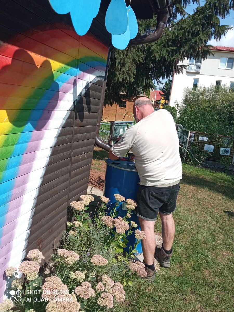 úprava svodu dešťovky do sudu                     stínící stříška nad tabulí