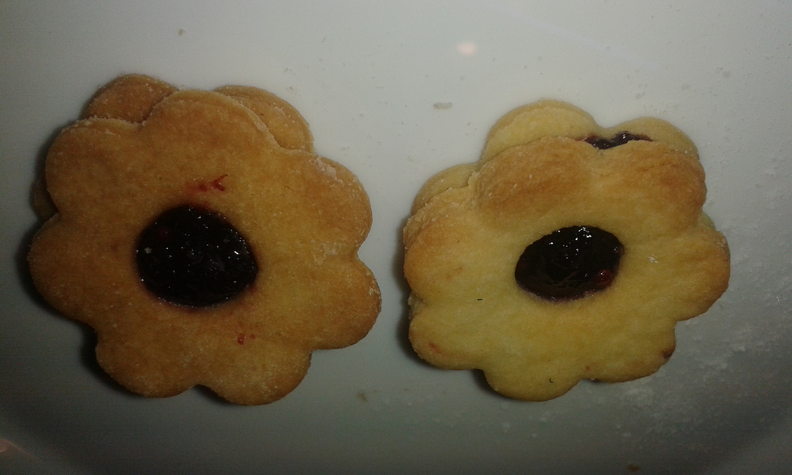 480 g hladké mouky, 320 g másla nebo tuku, 150 g moučkového cukru, 4 žloutky. Zpracujeme těsto, vyválíme a vytiskujeme tvary, pak   upečeme. Vychladlé slepujeme marmeládou.